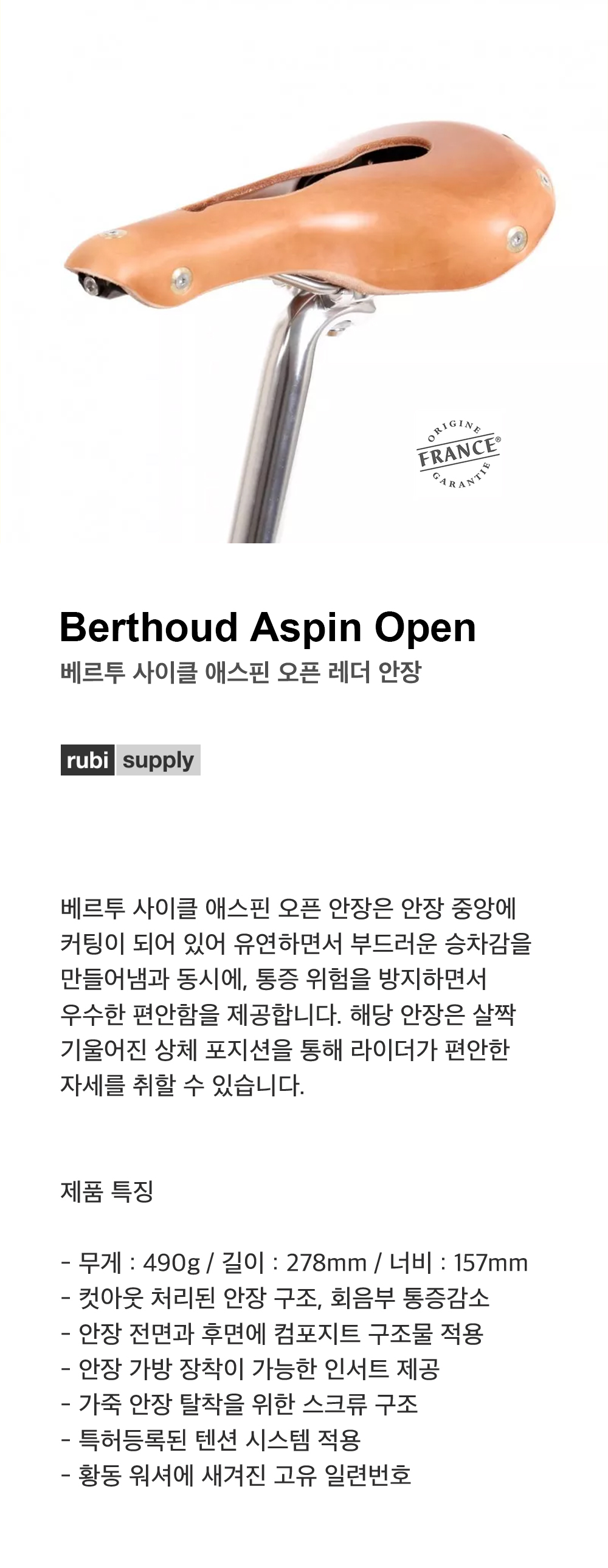 베르투 사이클 애스핀 오픈 레더 안장 블랙