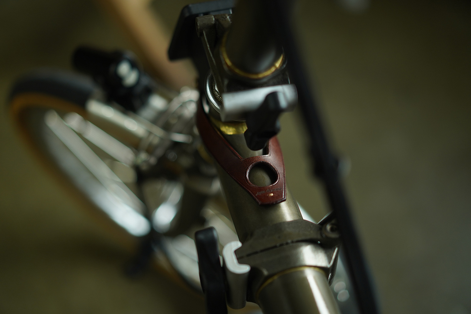 접이식 자전거인 브롬톤은 어댑터를 이용하여 가방을 안정적으로 거치할 수 있는 독자적인 시스템을 가지고 있습니다. 다만 가방의 탈착을 조작하는 레버가 에매한 위치에 달려 있기 때문에 라이딩을 마치고 가방을 분리하기 위해서는 다소 불편한 위치에서의 조작이 필요합니다.