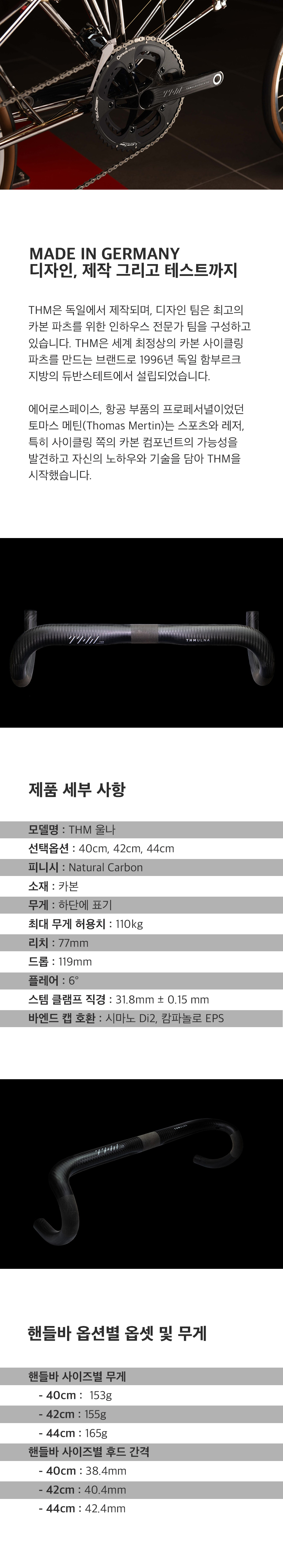 THM 울나 핸들바는 THM 카본 레이어링 노하우가 적용된 핸들바로서 트랜드를 선도하는 디자인과 기술이 담겨있습니다.
