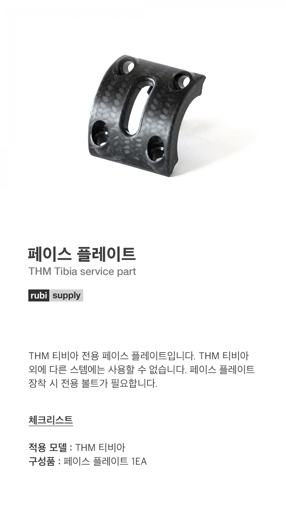 THM 티비아 전용 페이스 플레이트입니다. THM 티비아 외에 다른 스템에는 사용할 수 없습니다. 페이스 플레이트 장착 시 전용 볼트가 필요합니다.