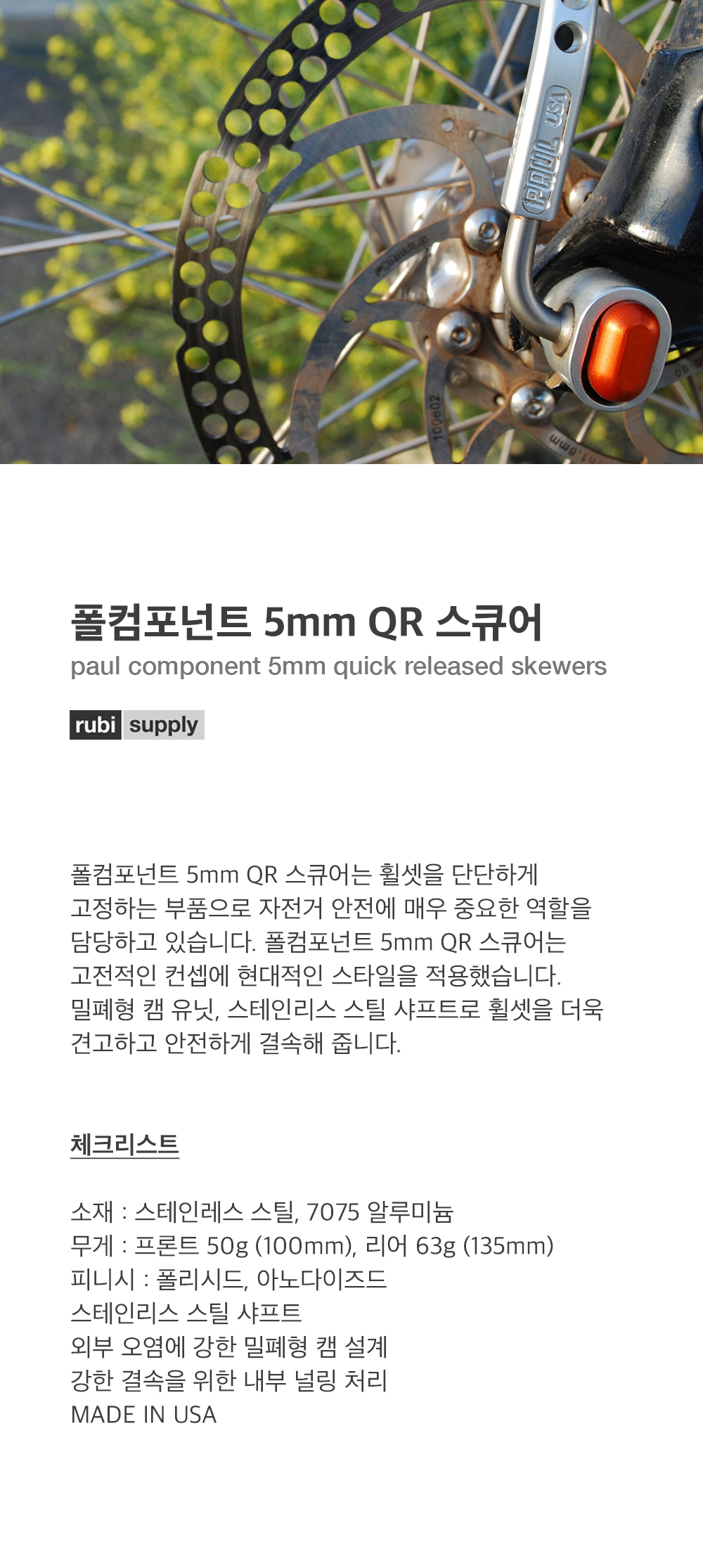 폴 컴포넌트 퀵 릴리즈 스큐어는 밀폐형 캠 유닛, 스테인리스 스틸 샤프트로 휠셋을 더욱 견고하고 안전하게 결속해 줍니다.